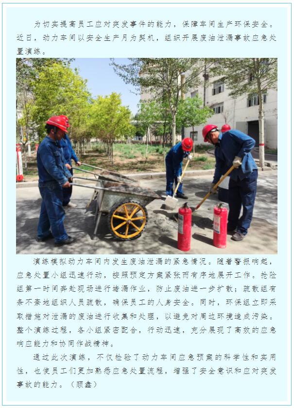 動力車間開展廢油泄漏事故應(yīng)急處置演練