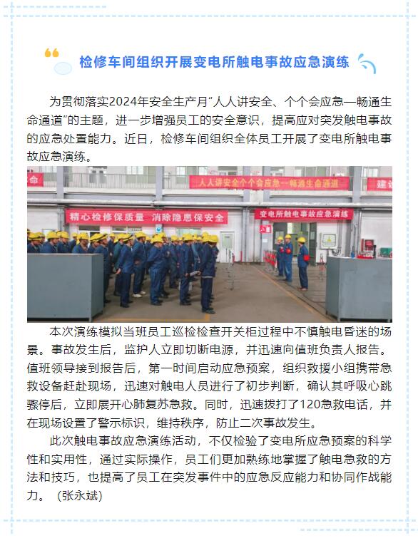 檢修車間組織開展變電所觸電事故應(yīng)急演練