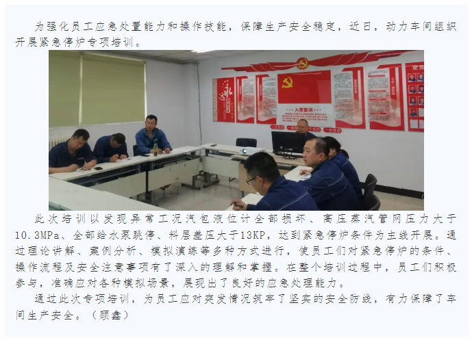 動力車間組織開展緊急停爐專項培訓