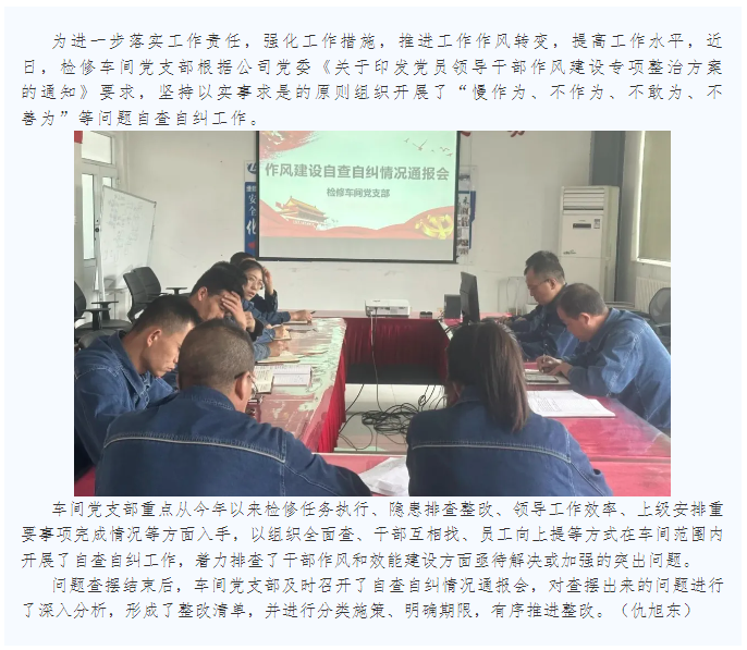 檢修車間黨支部組織開展作風(fēng)建設(shè)自查自糾工作