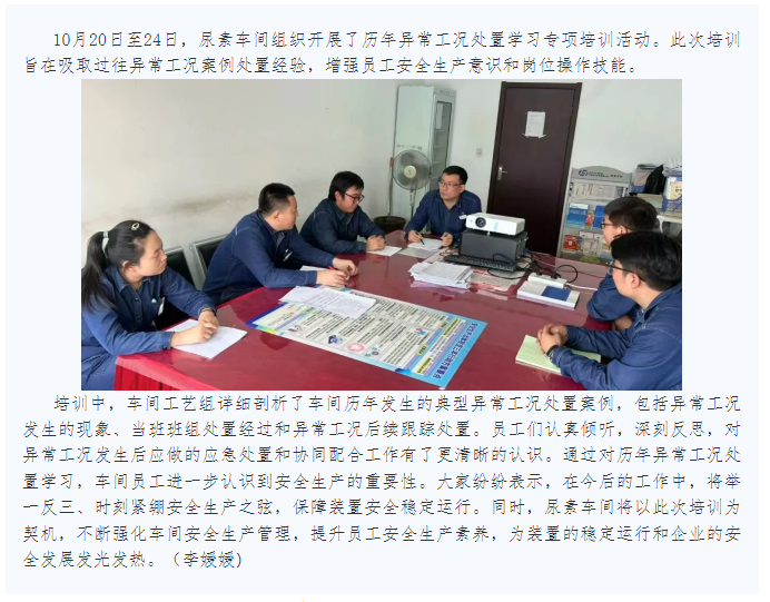 尿素車間組織開展歷年異常工況處置學習專項培訓