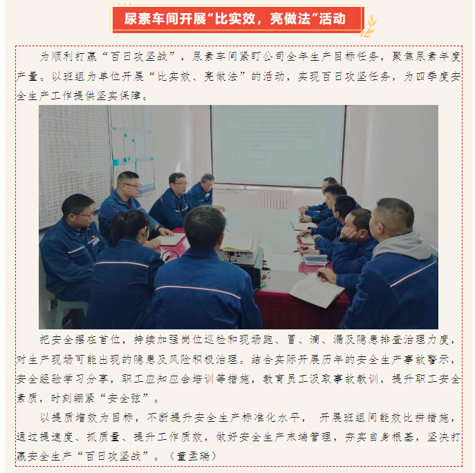 尿素車間開展“比實(shí)效,亮做法”活動(dòng)