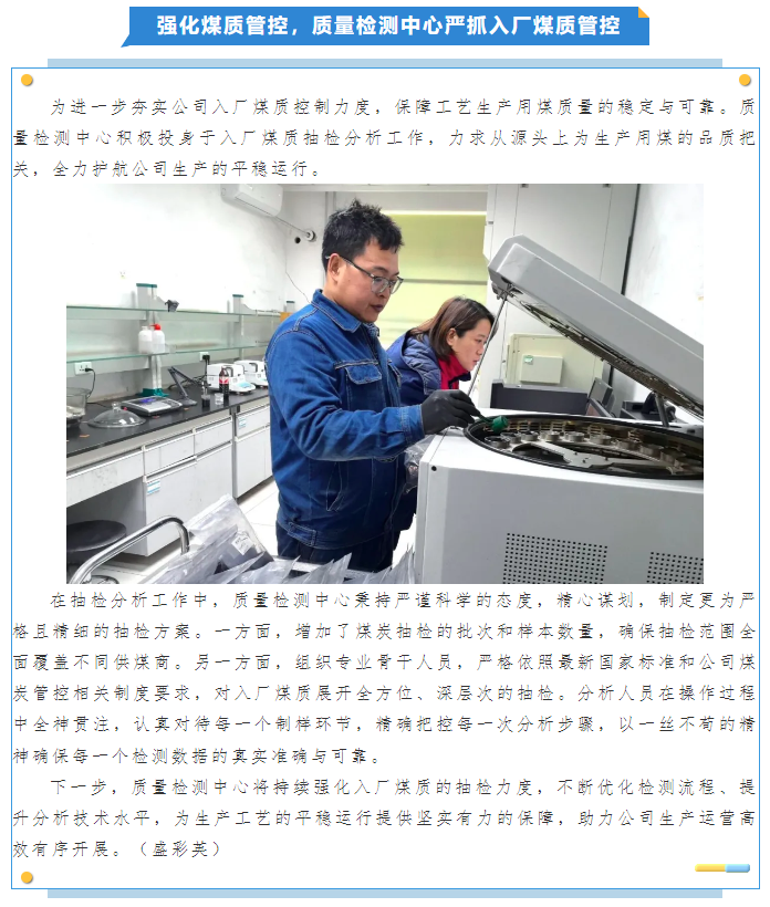 強化煤質(zhì)管控,質(zhì)量檢測中心嚴(yán)抓入廠煤質(zhì)管控
