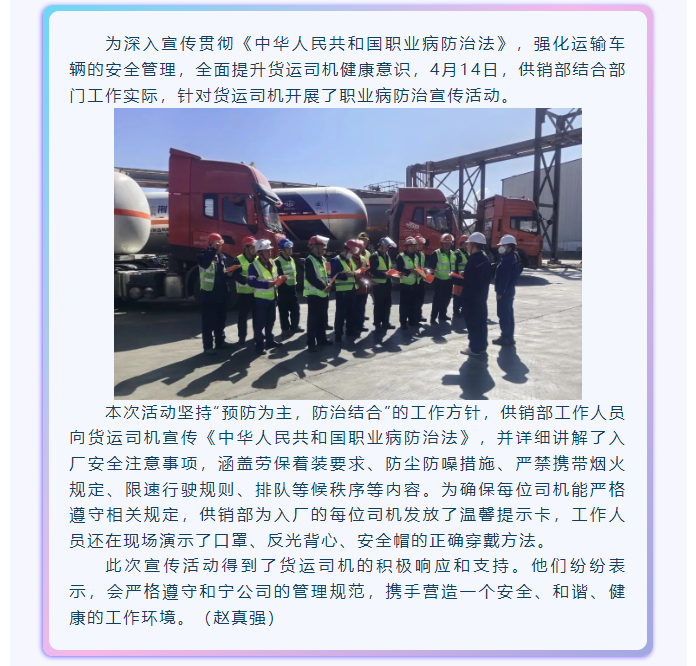 供銷部開展貨運(yùn)司機(jī)職業(yè)病防治宣傳活動(dòng)