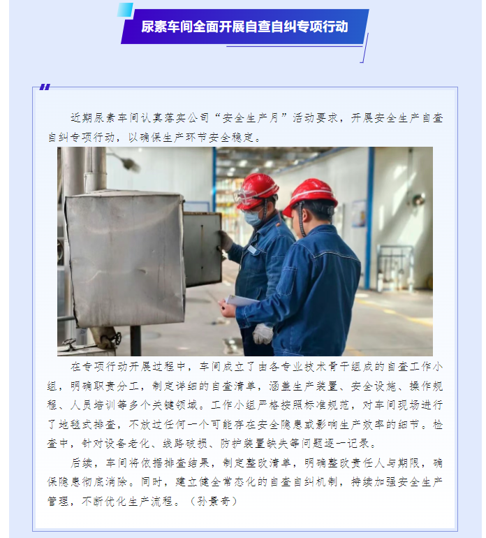 尿素車間全面開展自查自糾專項(xiàng)行動(dòng)