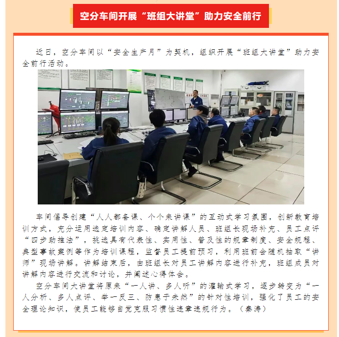 空分車間開展“班組大講堂”助力安全前行