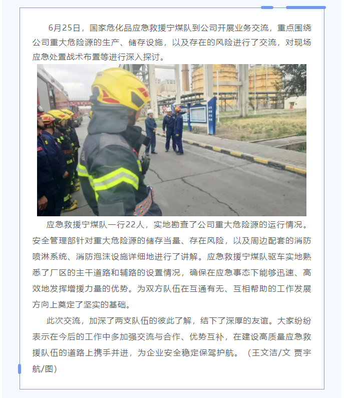 國家危化品應急救援寧煤隊到公司開展業務交流