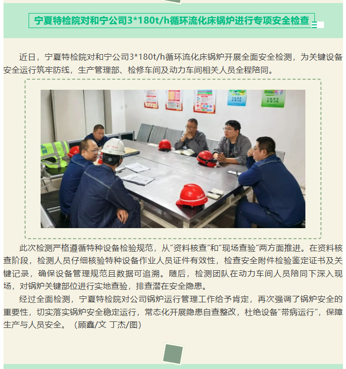 寧夏特檢院對和寧公司3*180t/h循環流化床鍋爐進行專項安全檢查