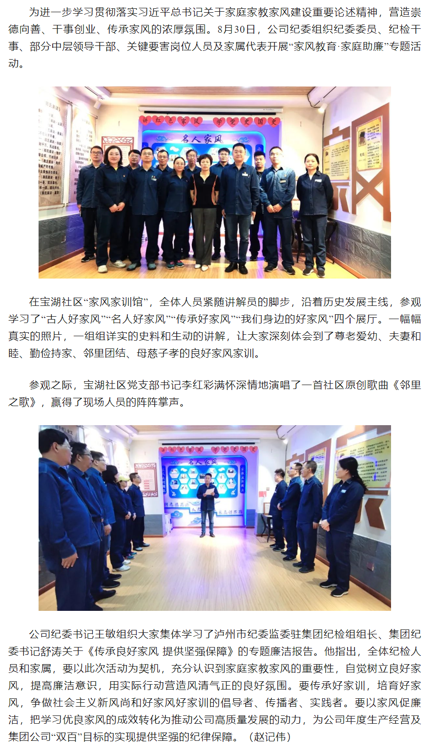 公司紀委開展“家風教育·家庭助廉”專題活動