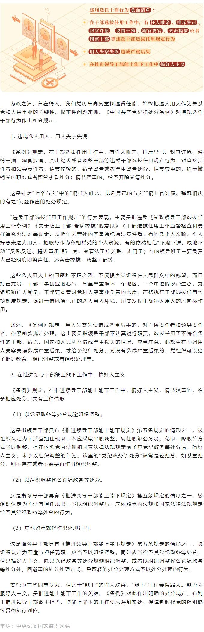 違規選任干部行為的認定標準和處分規定