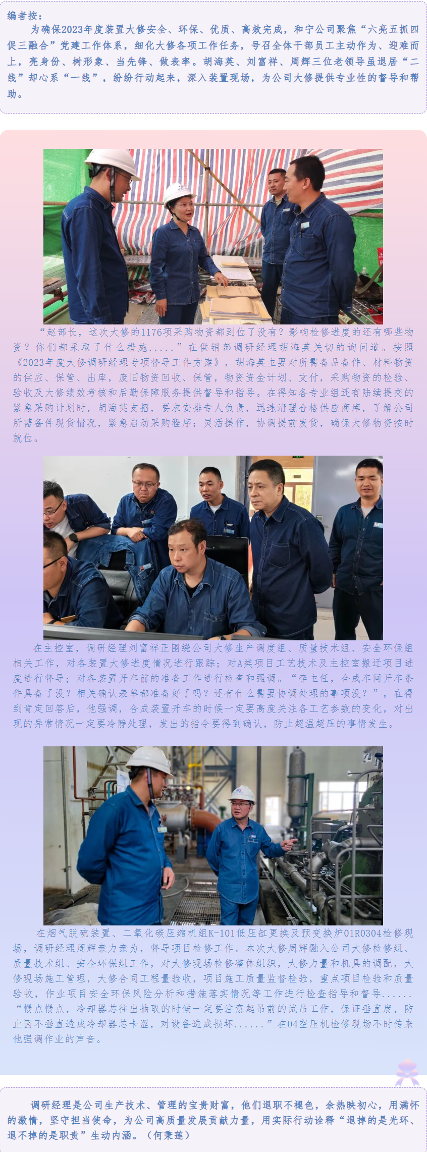 退居“二線”心系“一線”——和寧公司調(diào)研經(jīng)理大修工作紀(jì)實