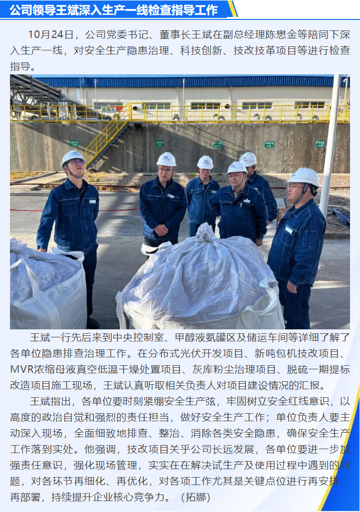 公司領(lǐng)導(dǎo)王斌深入生產(chǎn)一線檢查指導(dǎo)工作
