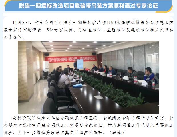 脫硫一期提標改造項目脫硫塔吊裝方案順利通過專家論證