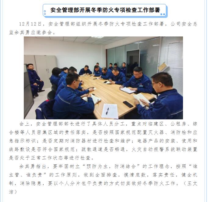 安全管理部開展冬季防火專項檢查工作部署