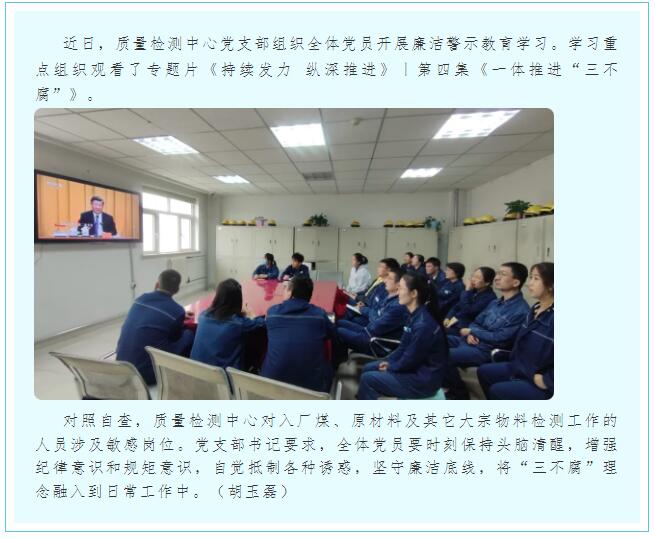 質量檢測中心黨支部組織開展廉潔警示教育學習