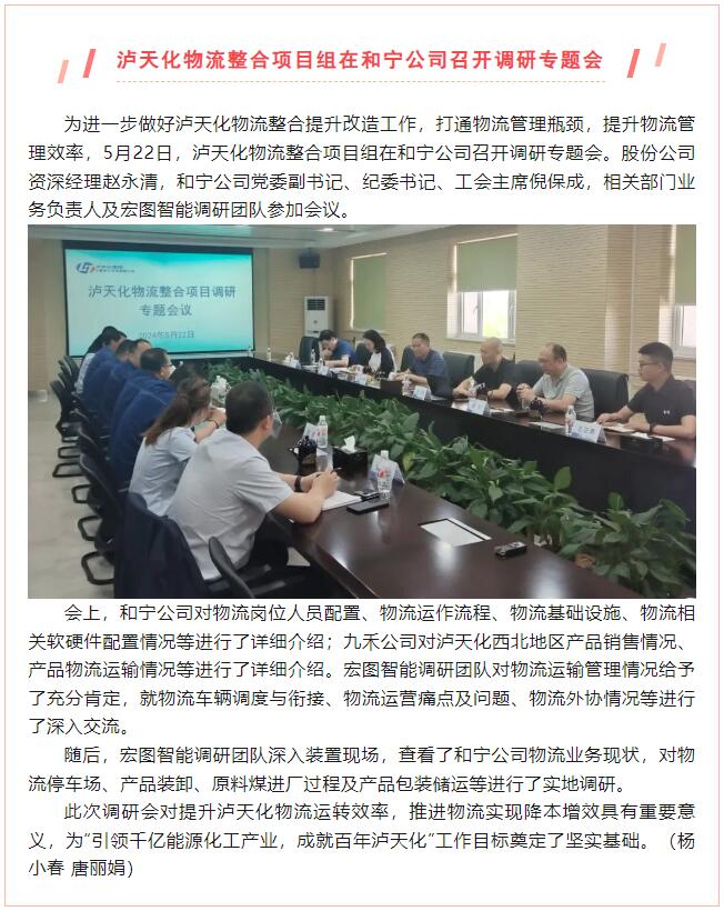 瀘天化物流整合項目組在和寧公司召開調研專題會