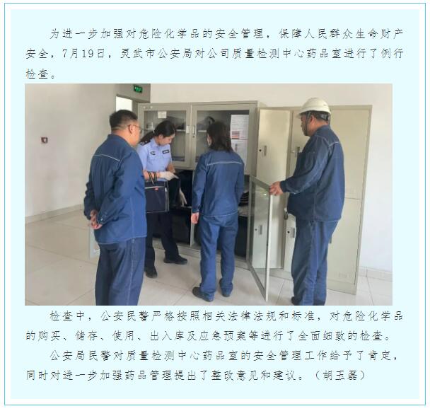 靈武市公安局對質量檢測中心藥品室例行檢查