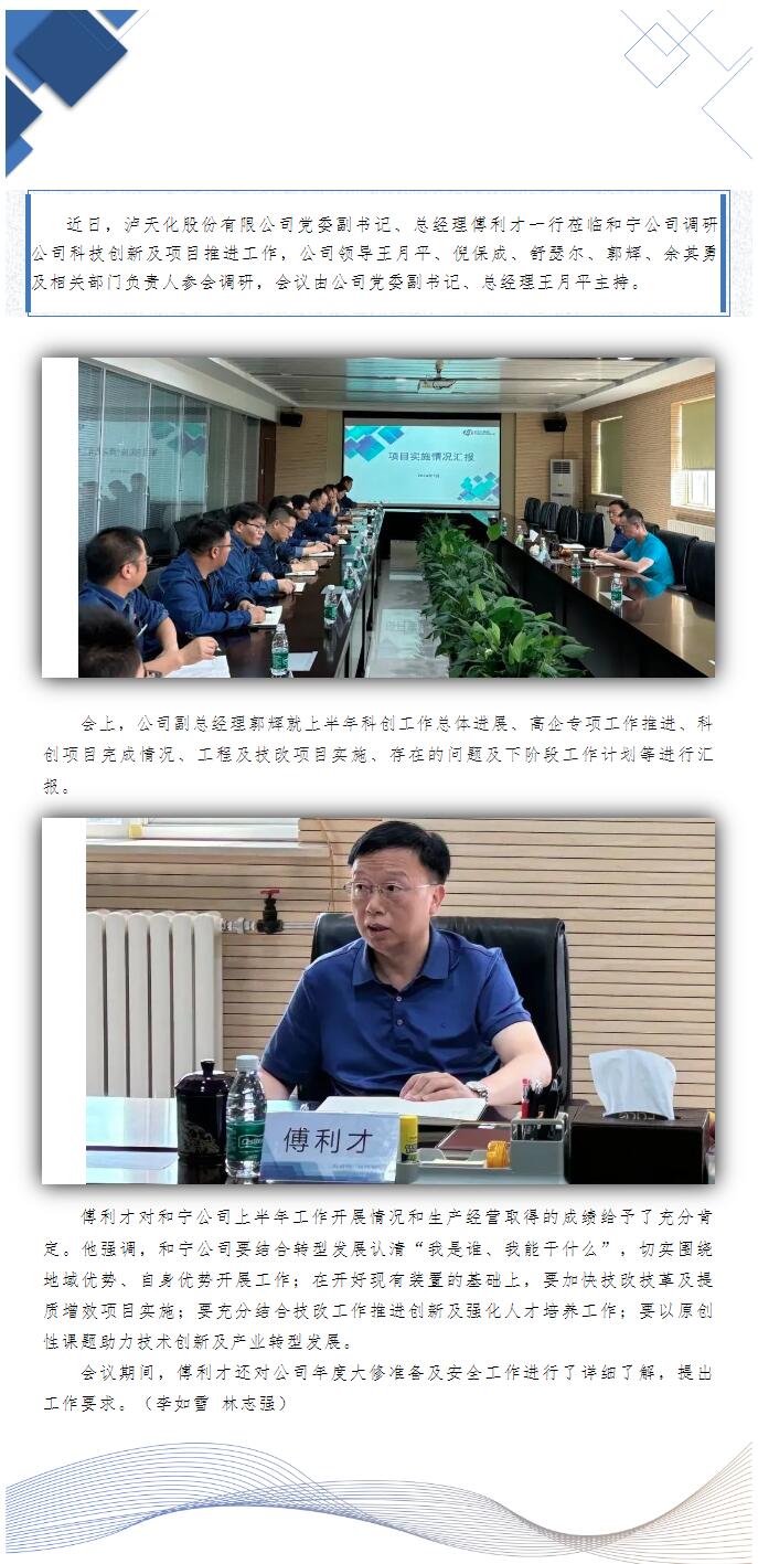 傅利才一行蒞臨和寧公司調(diào)研科技創(chuàng)新及項(xiàng)目推進(jìn)工作