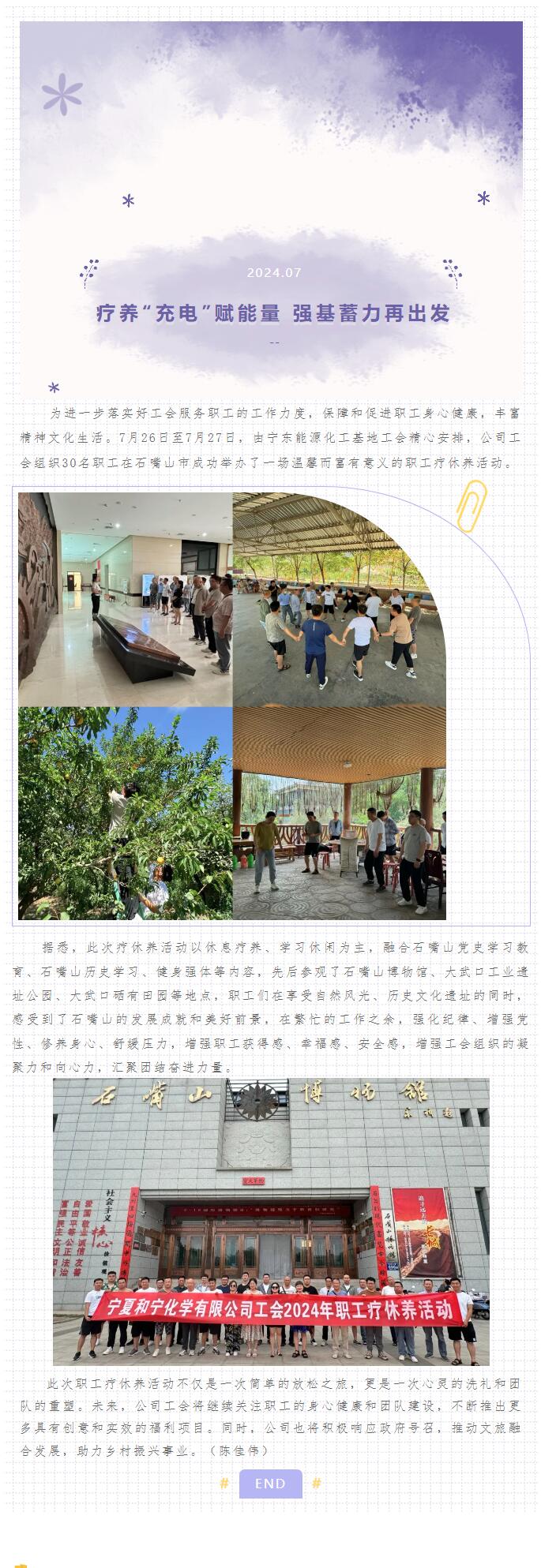 療養(yǎng)“充電”賦能量 強(qiáng)基蓄力再出發(fā)丨和寧公司工會(huì)開(kāi)展職工療養(yǎng)活動(dòng)