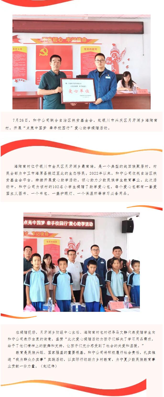 和寧公司開(kāi)展“點(diǎn)亮中國(guó)夢(mèng) 牽手校園行”愛(ài)心助學(xué)公益捐贈(zèng)活動(dòng)