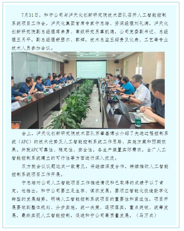 和寧要聞丨和寧公司召開人工智能控制系統(tǒng)項(xiàng)目工作會
