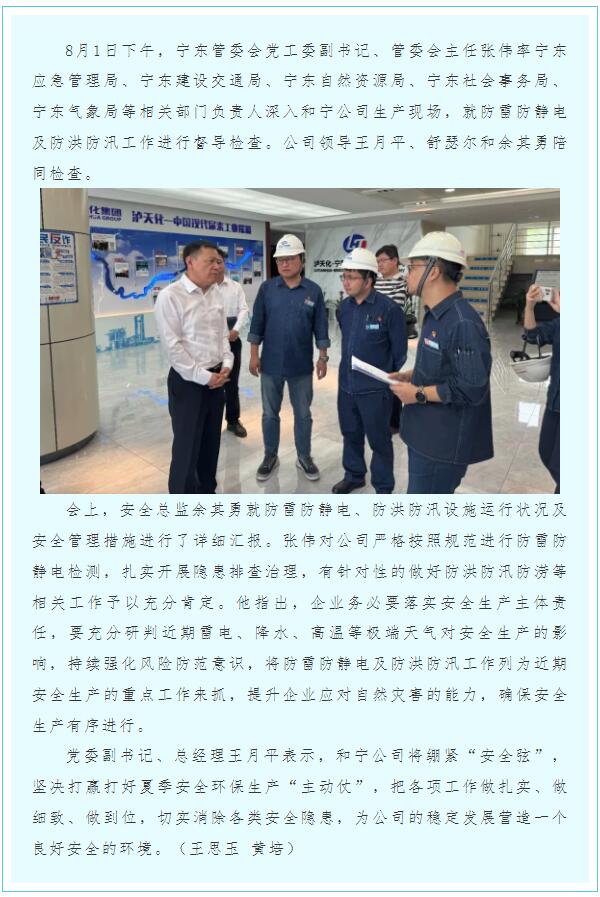 張偉一行蒞臨和寧公司督導防雷防靜電及防洪防汛工作