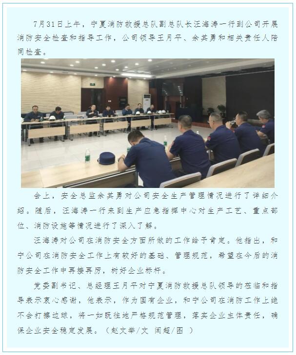 寧夏消防救援總隊到和寧公司檢查指導
