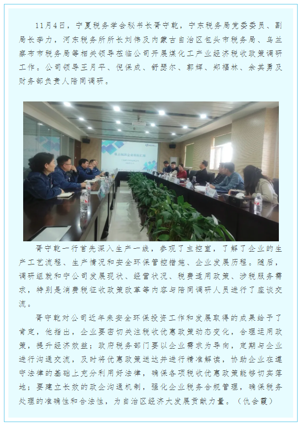 胥守乾一行蒞臨公司開展煤化工企業經濟稅收政策調研