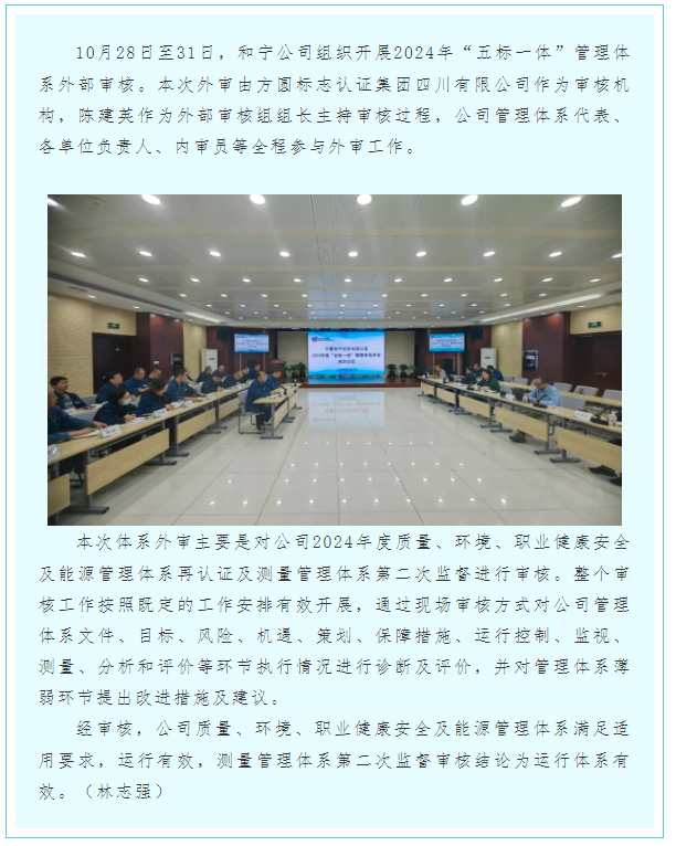 公司2024年“五標一體”管理體系外審工作圓滿完成