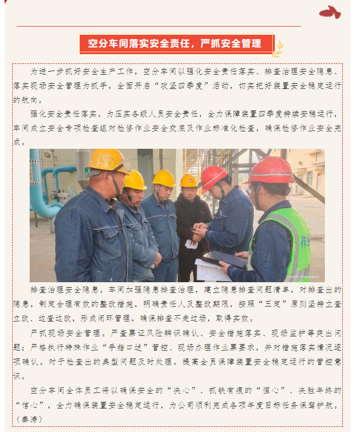 空分車間落實安全責(zé)任,嚴(yán)抓安全管理