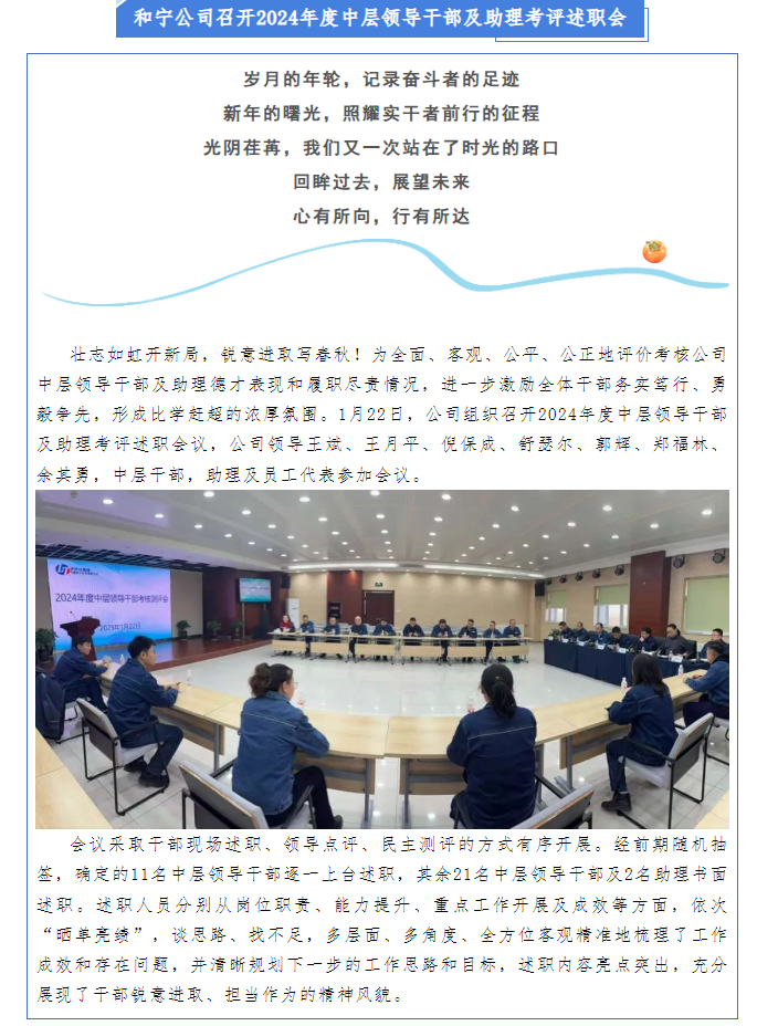 總結(jié)述職“交答卷” 凝心聚力“啟新程” | 和寧公司召開(kāi)2024年度中層領(lǐng)導(dǎo)干部及助理考評(píng)述職會(huì)
