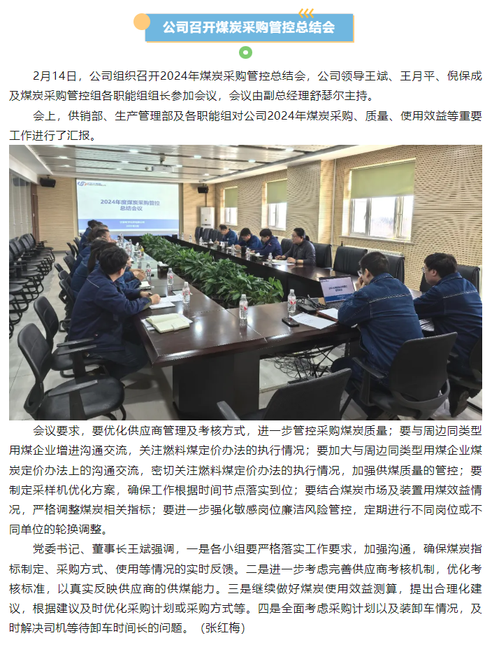 公司組織召開2024年煤炭采購管控總結會