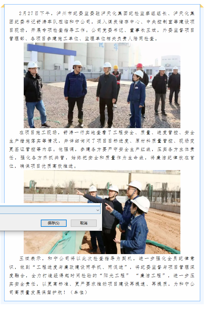 深入項目察實情 督導護航促發(fā)展——瀘天化集團領導蒞臨和寧公司新建項目檢查指導