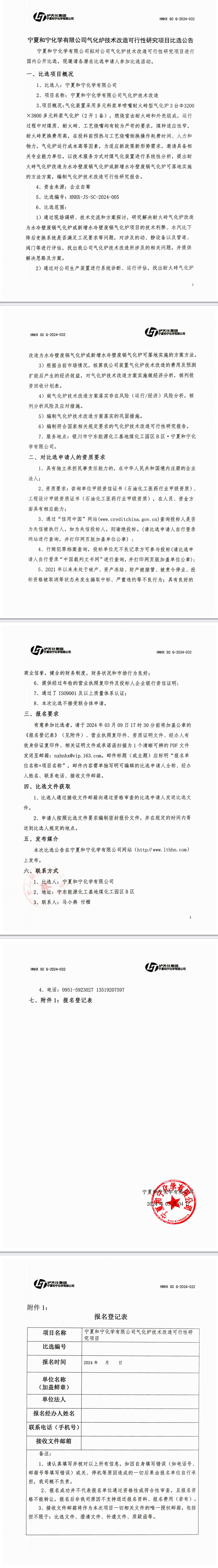 寧夏和寧化學有限公司氣化爐技術改造可行性研究項目比選公告2024.3.4
