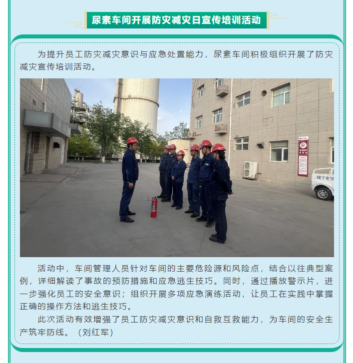 尿素車間開展防災(zāi)減災(zāi)日宣傳培訓(xùn)活動
